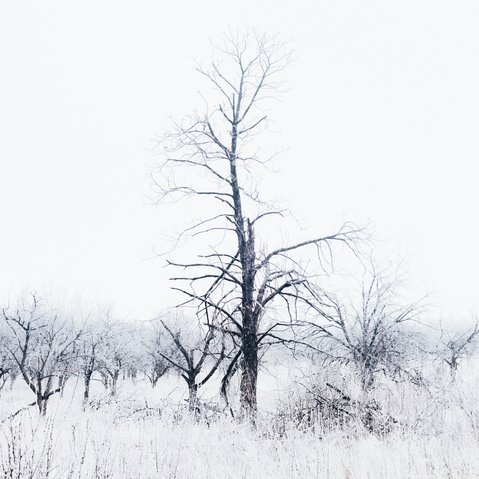 Die ambivalente Beziehung zwischen Mensch und Landschaft bildet eine konstante Klammer in der Doppel-Ausstellung des ukrainischen Dokumentarfotografen Maxim Dondyuk und des Ludwigshafener Fotografen Rainer Zerback. Dondyuk zeigt das vom Krieg geschundene Land der Ostukraine – verborgen unter einer zarten, reinweißen Schneeschicht. Die Spuren der Zerstörung sind ästhetisch überlagert, jedoch keineswegs ausgelöscht. Gerade durch diese subtile Verhüllung treten sie emotional umso intensiver hervor – spürbar, sichtbar, bedrückend schön.