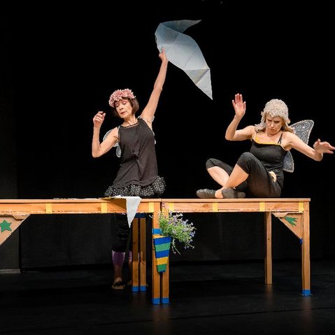 Der Wind stoppt. Zwei Feen verlieren plötzlich ihre Fähigkeit zu fliegen. Sie landen hier und können nicht mehr weg. Ohne die Hilfe ihrer Flügel sind sie an die Erde gebunden. Können sich Feen hier wohlfühlen? Sie beginnen, die Welt und sich gegenseitig zu erforschen. Dabei lernen sie eine Menge über das, was die Welt zusammenhält. Mit viel Bewegung und wenigen Worten spielt JokkMokk ein einfühlsames Theaterstück für die jüngsten Theaterbesucherinnen und Theaterbesucher.